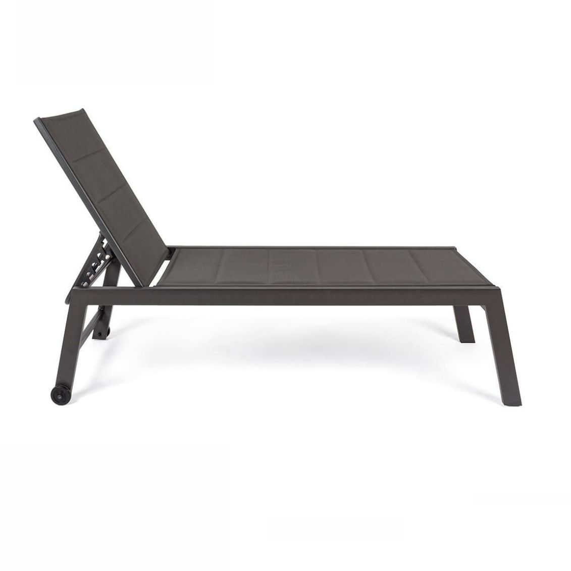 Bizzotto Hilde è un lettino prendisole da esterno in alluminio verniciato a polvere color antracite, con seduta e schienale in textilene 2x1 imbottito e schienale regolabile in 5 posizioni. Dotato di ruote per il trasporto facilitato. Dimensioni: 65 x 200 x 102 cm, altezza seduta 43 cm, peso 7,3 kg. Codice EAN: 8051836275713.