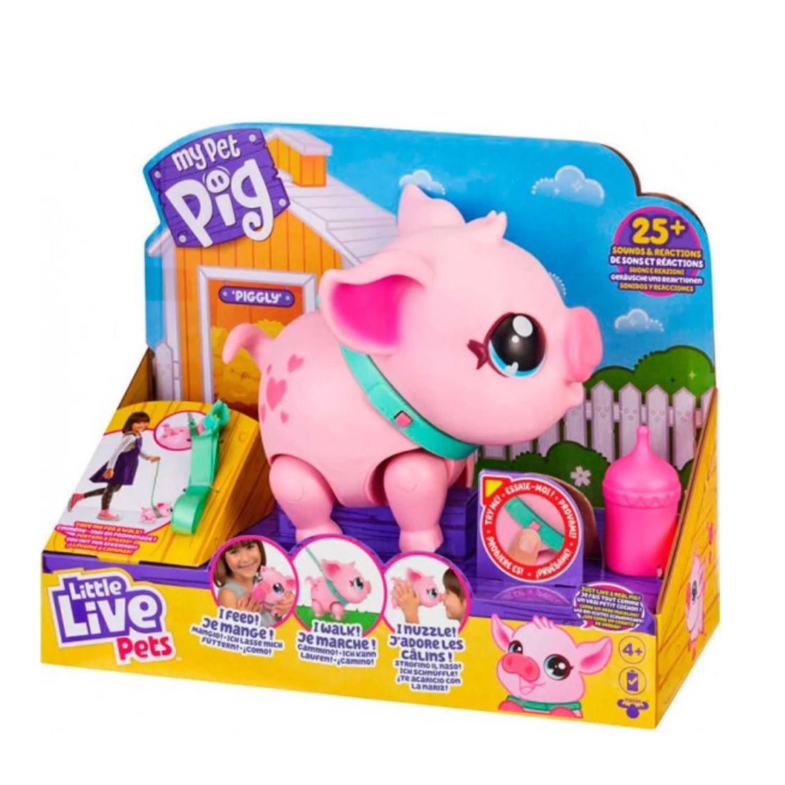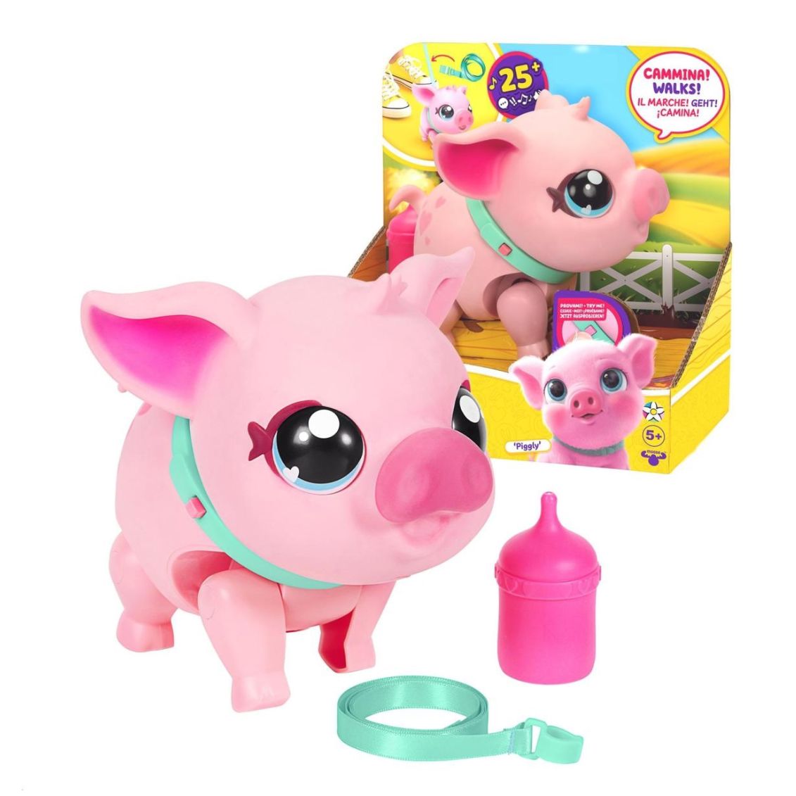 .Il maialino domestico più adorabile che ci sia! Piggly si muove, interagisce e si comporta come un vero maialino. Strofinandoti il naso morbido contro di te, ti sorprenderà con reazioni realistiche e oltre 25 suoni divertenti.