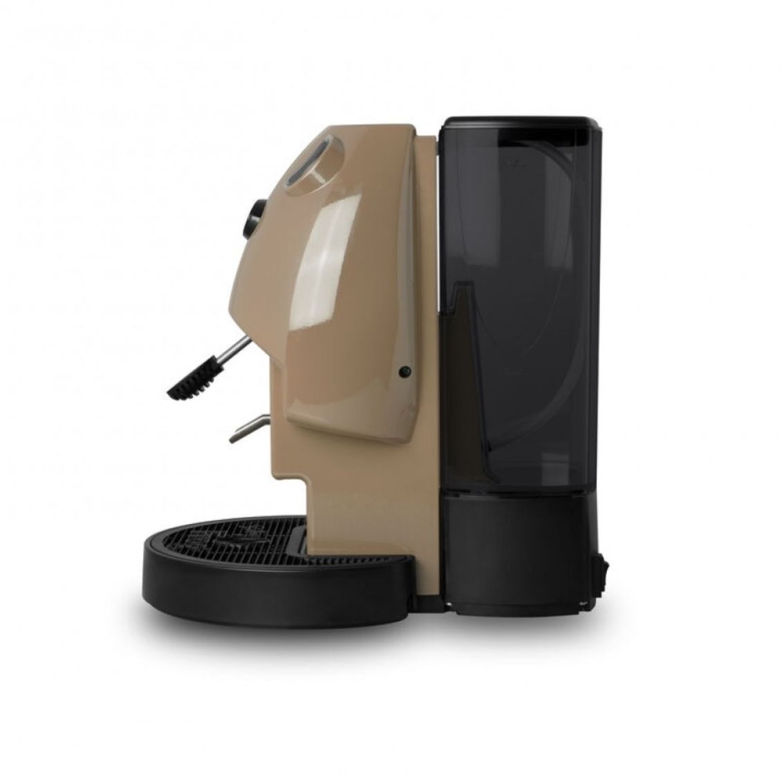 .Compatta ed eco-friendly macchina a cialde E.S.E. 44mm in elegante color nocciola. Versione ridotta della classica Frog, consuma solo 450W e include funzione stand-by per il massimo risparmio energetico. Dotata di diffusore brevettato per caffè cremosi, portacialda asportabile e pratico serbatoio ibrido da 1,5L utilizzabile anche come portabottiglia da 0,5L per un'igiene superiore.