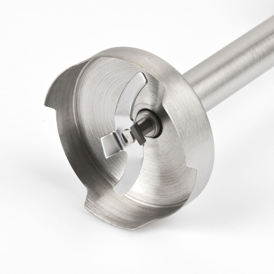 Il gruppo lame è composto da 4 lame in acciaio inox disposte su livelli diversi per ottimizzare il flusso degli ingredienti. Questa configurazione garantisce frullatura omogenea senza grumi, tritura uniformemente senza lasciare pezzi grossi, incorpora aria efficacemente negli impasti montati e riduce tempi di lavorazione rispetto a sistemi con 2 lame. Le lame inox mantengono affilatura nel tempo.