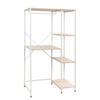 .Un mobile salvaspazio unico e completo per organizzare la zona lavanderia con stile! Il Mobile Lavatrice Janet è la soluzione multifunzionale perfetta per ottimizzare gli spazi attorno alla lavatrice. Con 4 ripiani capienti laterali, barra appendiabiti superiore e struttura in metallo bianco con ripiani effetto legno naturale, questo mobile unisce praticità ed estetica moderna. Ideale per bagni, lavanderie, balconi attrezzati o ripostigli, trasforma la zona lavatrice in un angolo ordinato e funzionale dove trovano posto detersivi, cesti, accessori per la pulizia e capi da appendere.