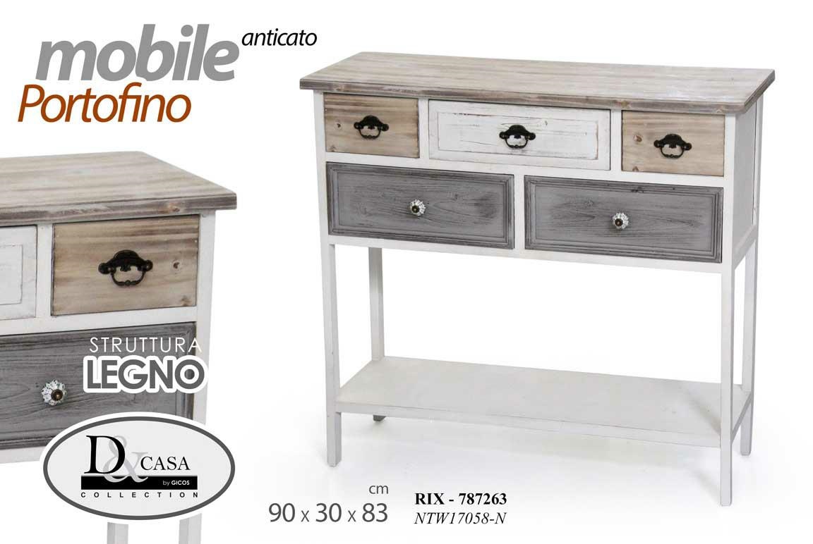 Questo mobile cassettiera, dispone di 5 cassetti e base appoggio in stile shabby e può essere integrato in ogni arredo.