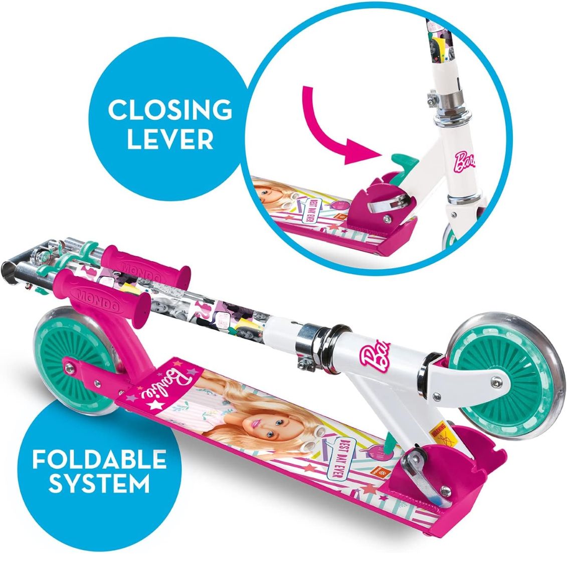 Il monopattino ufficiale Barbie con struttura pieghevole ultraleggera! Questo fantastico monopattino a 2 ruote unisce il glamour del mondo Barbie alla sicurezza e robustezza di una struttura in alluminio. Con manubrio regolabile, ruote da 120mm e sistema di piegatura rapida, è perfetto per accompagnare le bambine in città, al parco o durante le passeggiate, garantendo divertimento e stile in ogni spostamento.