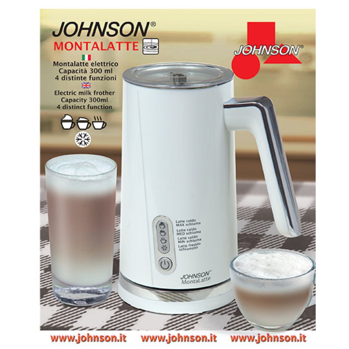 .MONTALATTE 4 in 1 di JOHNSON Elettrodomestici è il nuovo montalatte elettrico a 4 funzioni versatili. Riscaldamento del latte, schiuma calda e densa per cappuccini cremosi, schiuma calda e ariosa per latte macchiato, schiuma di latte fredda per bevande estive, in grado di soddisfare le molteplici esigenze di ogni famiglia. Con una potenza di 550W e una capacità massima di 300ml è in grado di preparare più tazze di bevande alla volta. Dotato di impugnatura ergonomica che facilita la presa e consente di versare facilmente la schiuma di latte senza sprechi. Il coperchio trasparente permette di controllare in qualsiasi momento lo stato di funzionamento. Facile da pulire: il materiale in acciaio inossidabile food grade, la frusta rimovibile e il coperchio smontabile rendono la pulizia rapida e sicura.