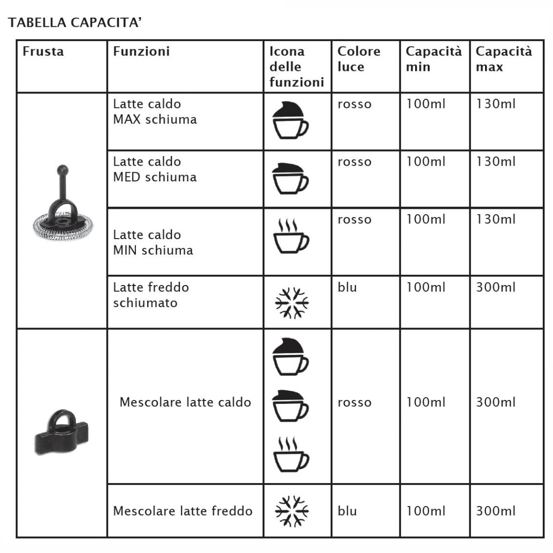 | Capacità: | 300ml massima (60-300ml a seconda della funzione) |