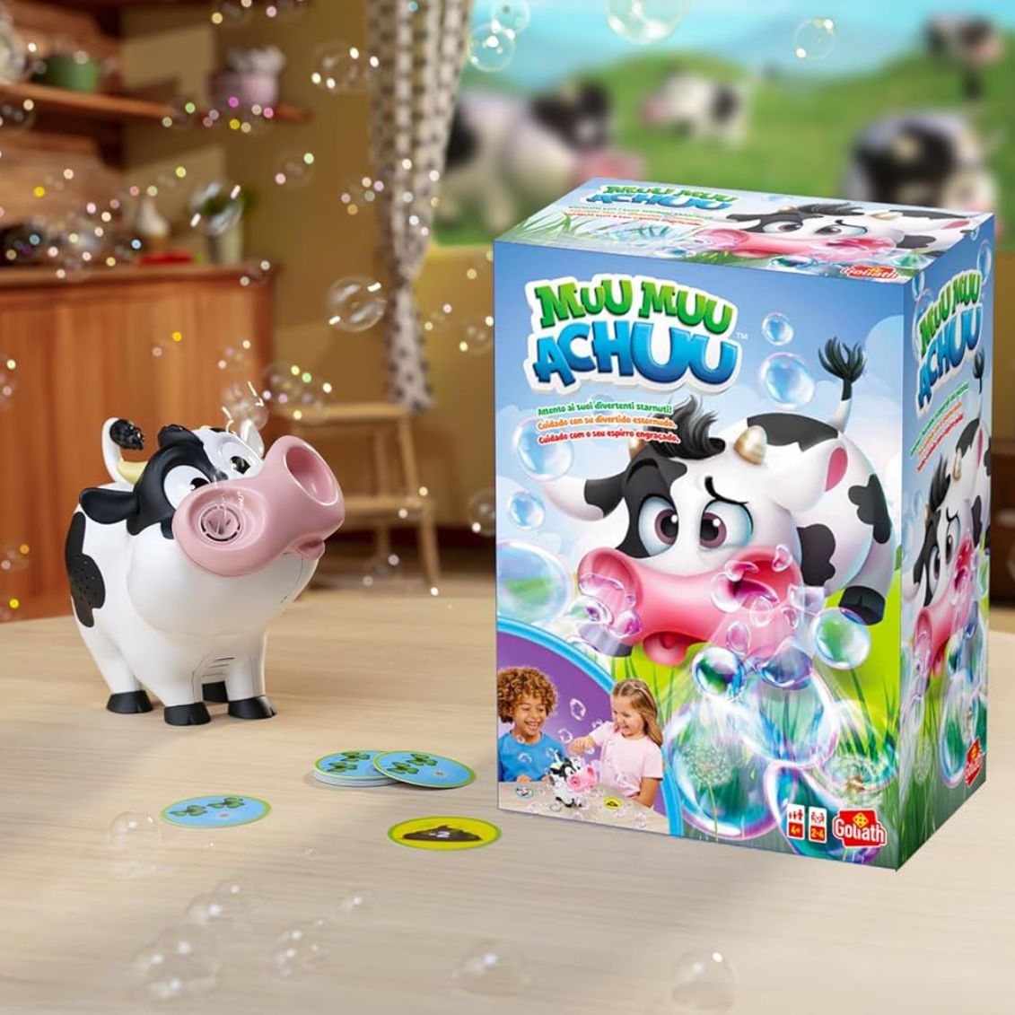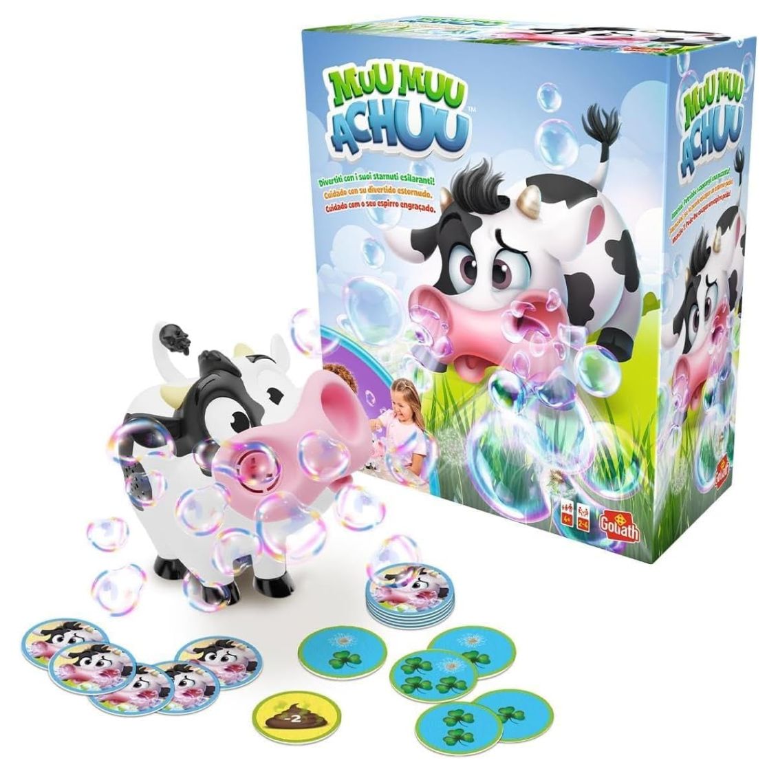 Mescola le carte e distribuisci il mazzo. A turno, ogni giocatore pesca una carta e segue l’indicazione: premi la testa di Muu Muu, raccogli trifogli per fare punti o affronta un mega starnuto che può far perdere progressi! Le reazioni sono imprevedibili e fanno scoppiare di risate. Vince chi totalizza più punti al termine del mazzo.