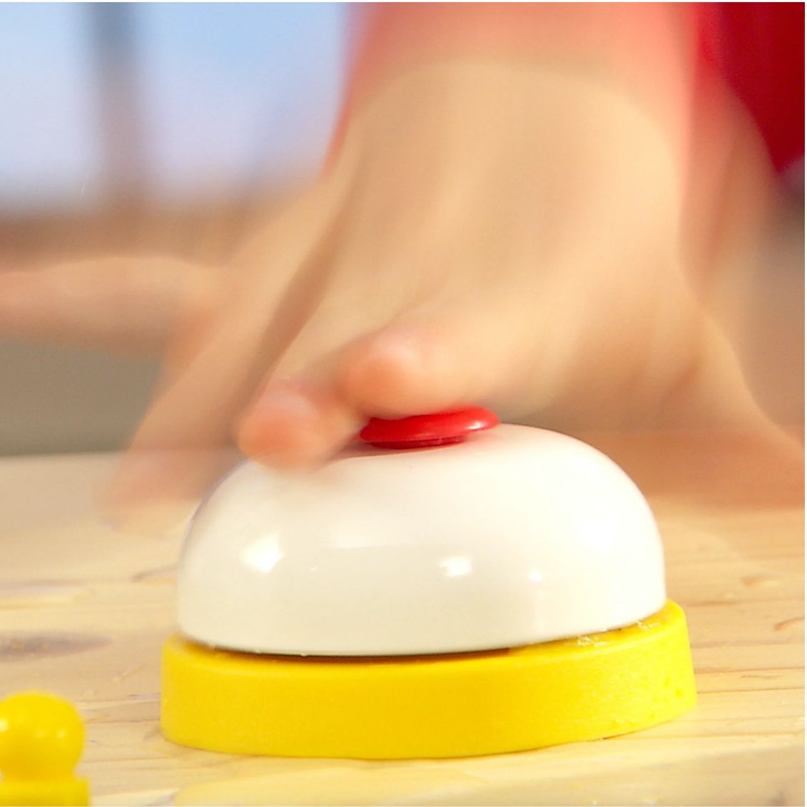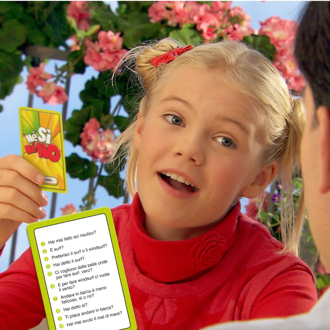 Mescola le carte, estrai la prima e leggi le domande nell'ordine indicato. Se il tuo avversario pronuncia "sì" o "no", il giocatore più veloce a premere il campanello avanza di una casella; vince chi raggiunge per primo il centro del tabellone.