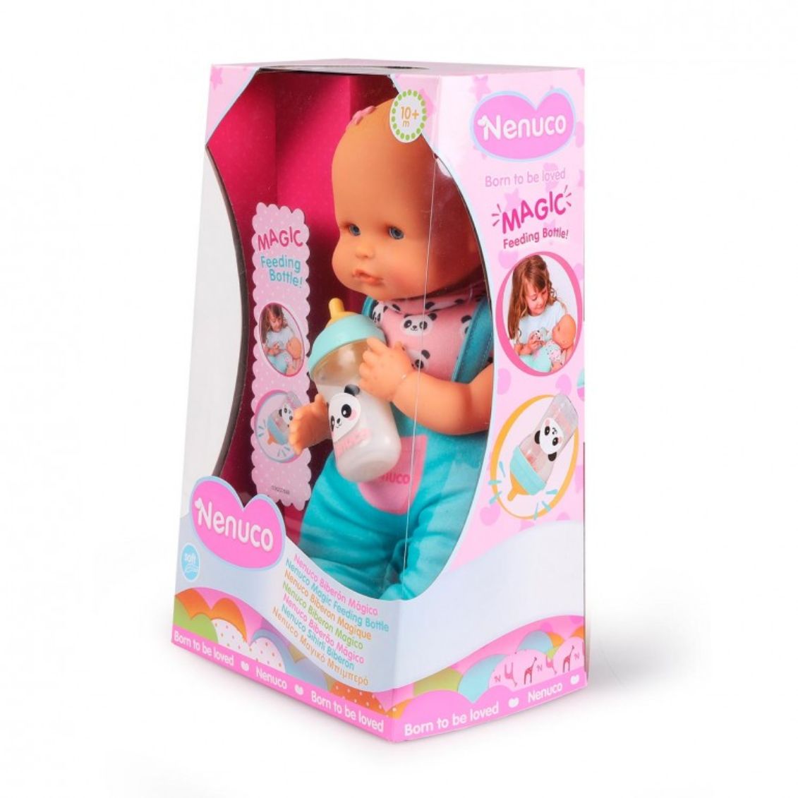 .Scopri Nenuco Biberon Magico Rosa! Bambola morbida alta 35cm con simpatico vestitino a tema panda e biberon magico: mentre beve, il liquido scompare nella pancia. Un gioco dolce e interattivo per bambine dai 10 mesi in su, per momenti di coccole e fantasia.