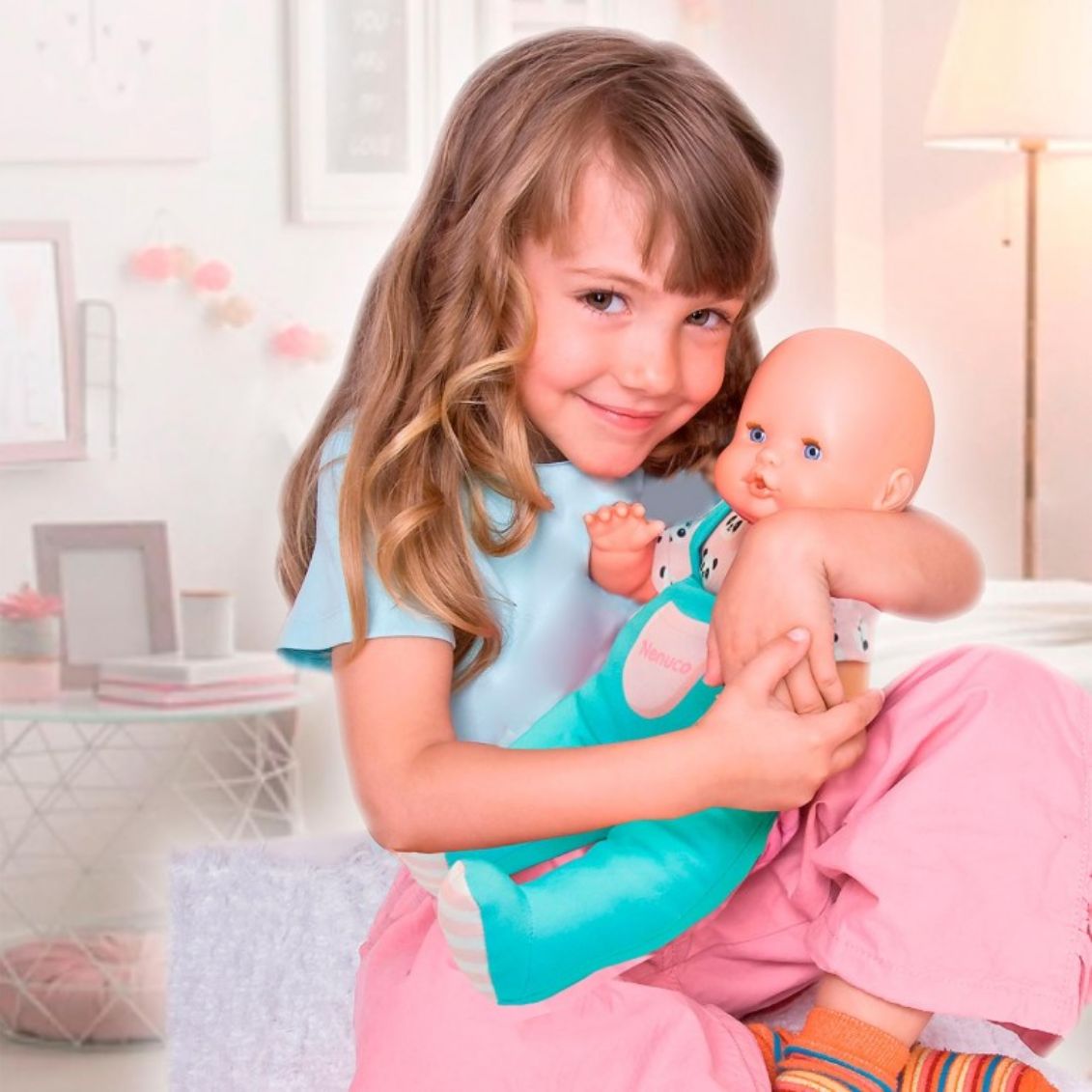 Riempi il biberon con acqua, avvicinalo alla bocca di Nenuco e fai finta che beva: vedrai il liquido sparire nella pancia! Consigliato per bambini e bambine dai 10 mesi in su. Facile da pulire e da usare in totale sicurezza.