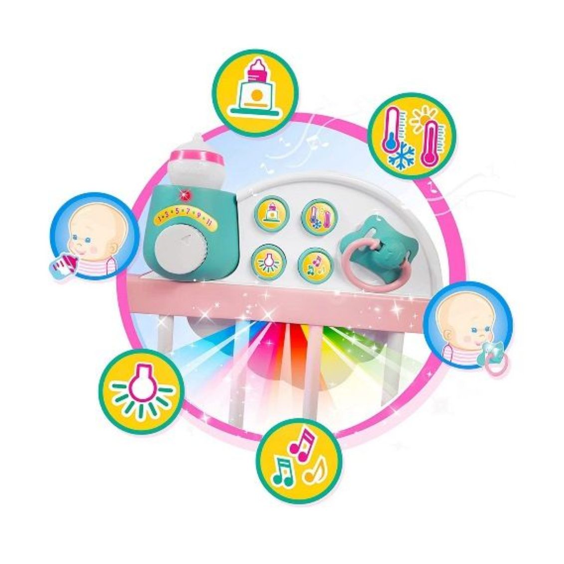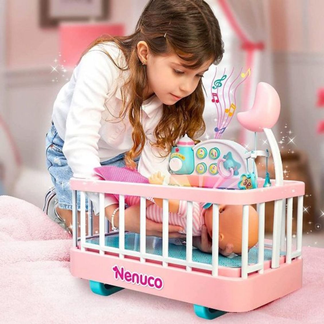 .La culla interattiva che ti aiuta a capire perché Nenuco piange. Metti Nenuco nella culla e prova le funzioni (ninna nanna, luci, “riscaldamento”, scaldabiberon): quando trovi il bisogno giusto, smette di piangere!