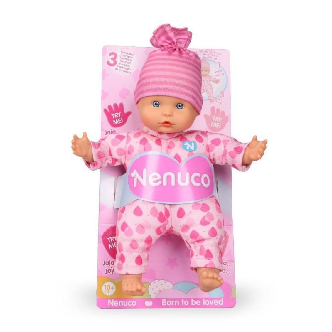 .Bambola Nenuco dal corpo morbido: premi la manina o il piedino e senti i suoni, può anche mettere il dito in bocca come un vero bebè. Un compagno di gioco tenero e sicuro, ideale per le prime esperienze di gioco imitativo dai 10 mesi in su.