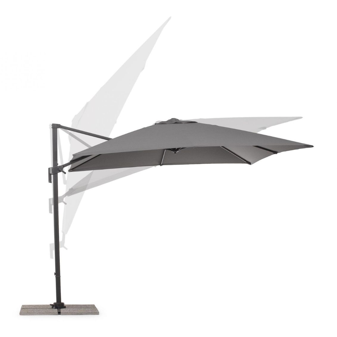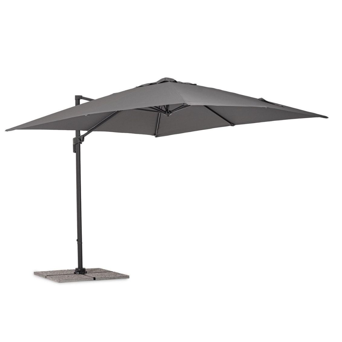 L'Ombrellone a Braccio Siviglia 3x3 m Antracite/Grigio – Bizzotto è un ombrellone decentrato con palo laterale, struttura in alluminio e acciaio verniciati a polvere color antracite, telo in poliestere grigio 200 gr/m² con camino antivento. Palo girevole a 360°, base a croce in acciaio inclusa. Dimensioni 300x300x235 cm. Codice EAN: 8051836791138.