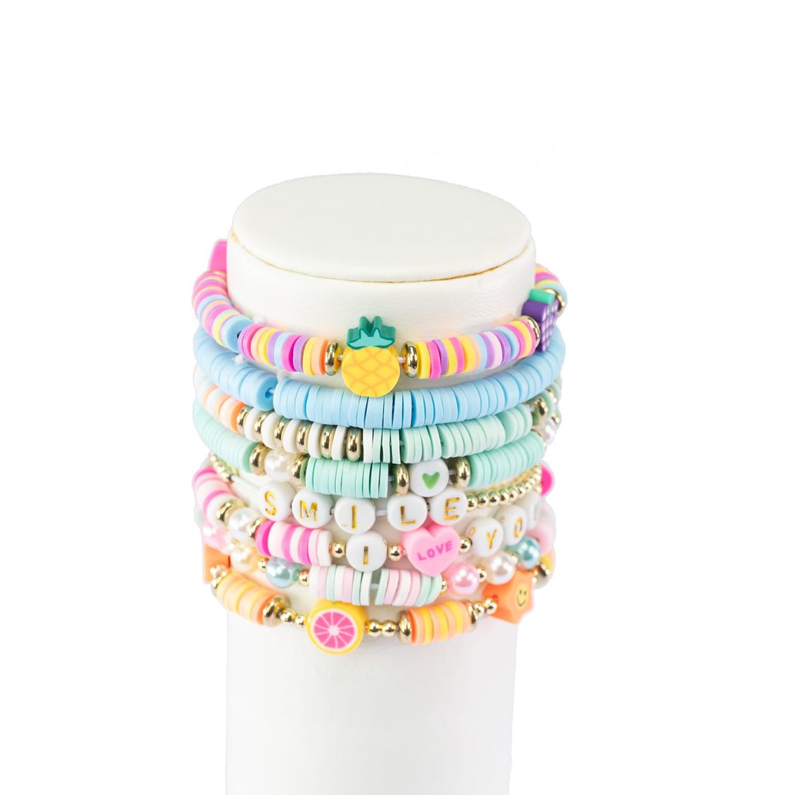 .Confezione con oltre 500 perline moderne, fresche e coloratissime. Include perline heishi, perline frutta, smile, cuori e lettere per dare sfogo alla tua creatività e personalizzare i tuoi gioielli in modo unico.