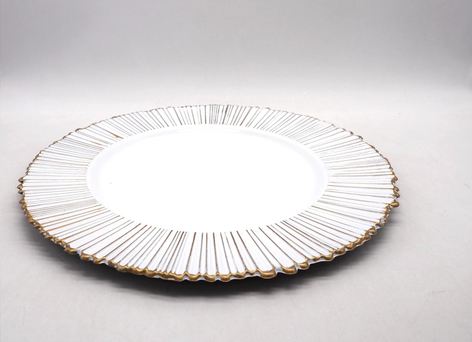 Piatto Plastica Diam. 33Cm. Bianco/Oro