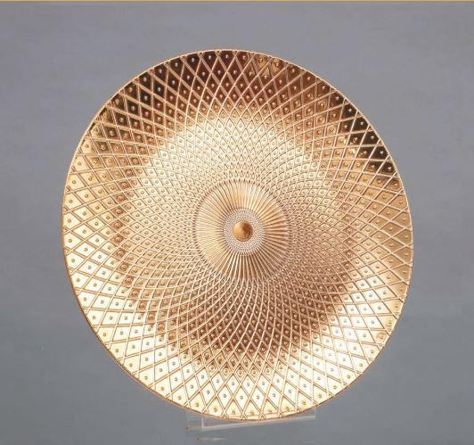 Piatto Plastica Tondo Cm.33Rombi Concentrici Oro Met.