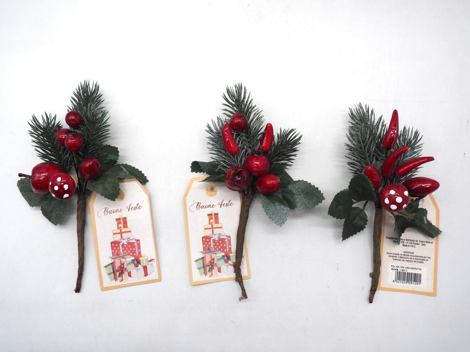 Pick Aghi Pino C/Bacche/Fruttini 16X10Cm. 3 Ass.Ti