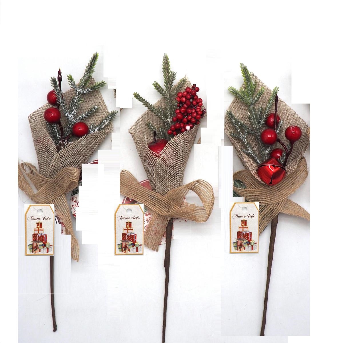Pick Aghi Pino C/Bacche/Fruttini H.20/22Cm.C/Juta Ass.Ti