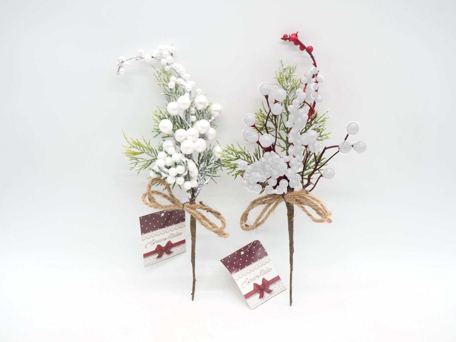 Pick Aghi Pino C/Bacche/Fruttini H.22,5/24Cm. Bianco