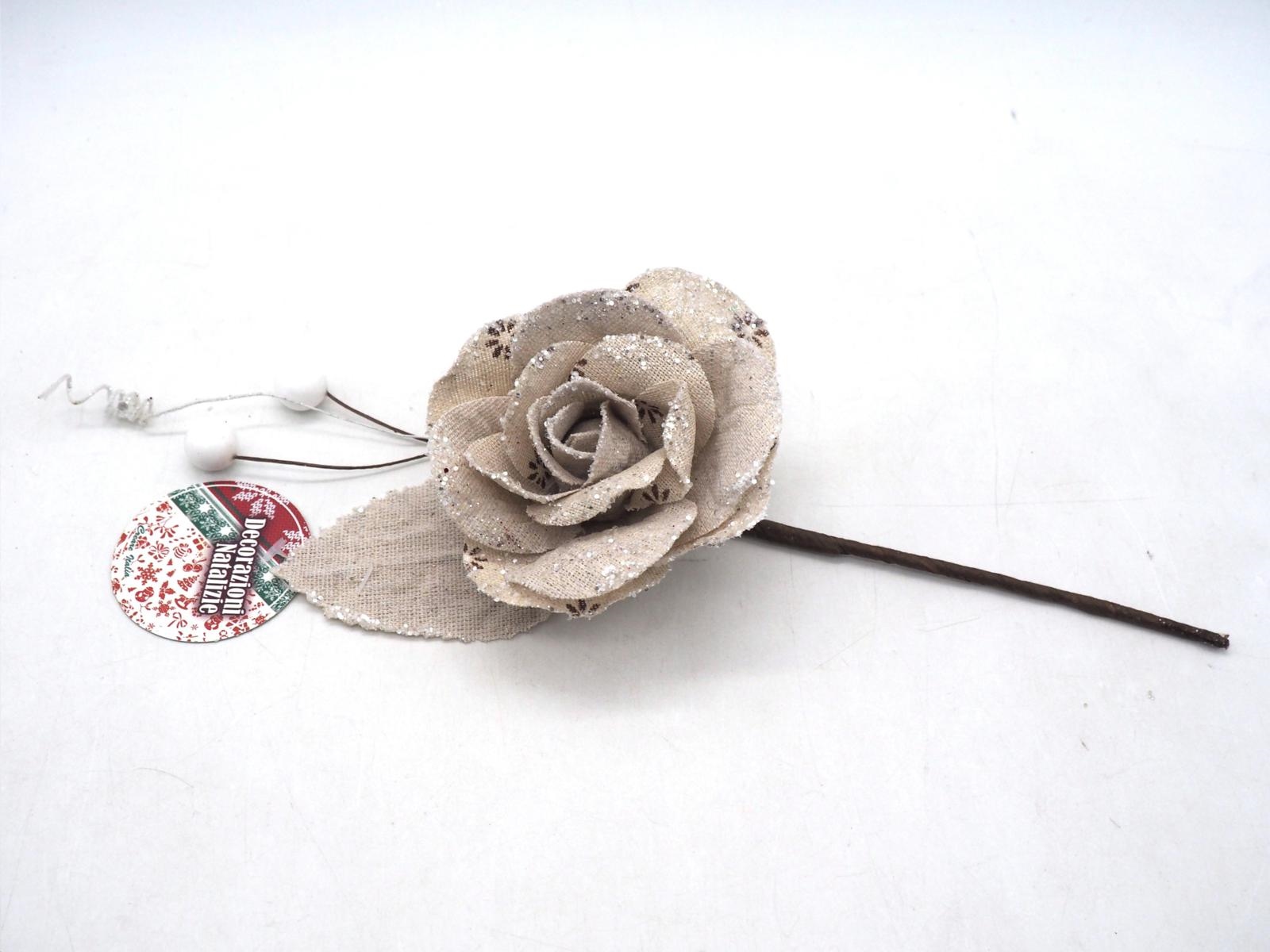 Pick C/Rosa C/Bacche Bianche L.21/D.8Cm. Crema