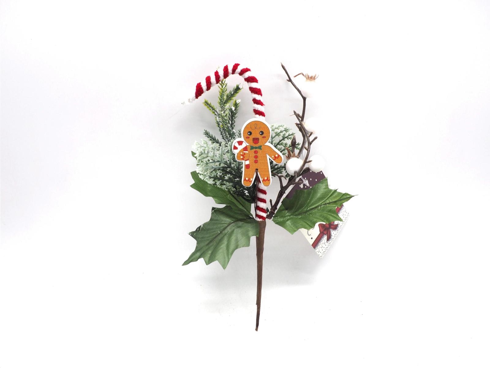 Pick Natalizio Bianco/Rosso H23Cm C/Stick-Aghi - Linea Candy