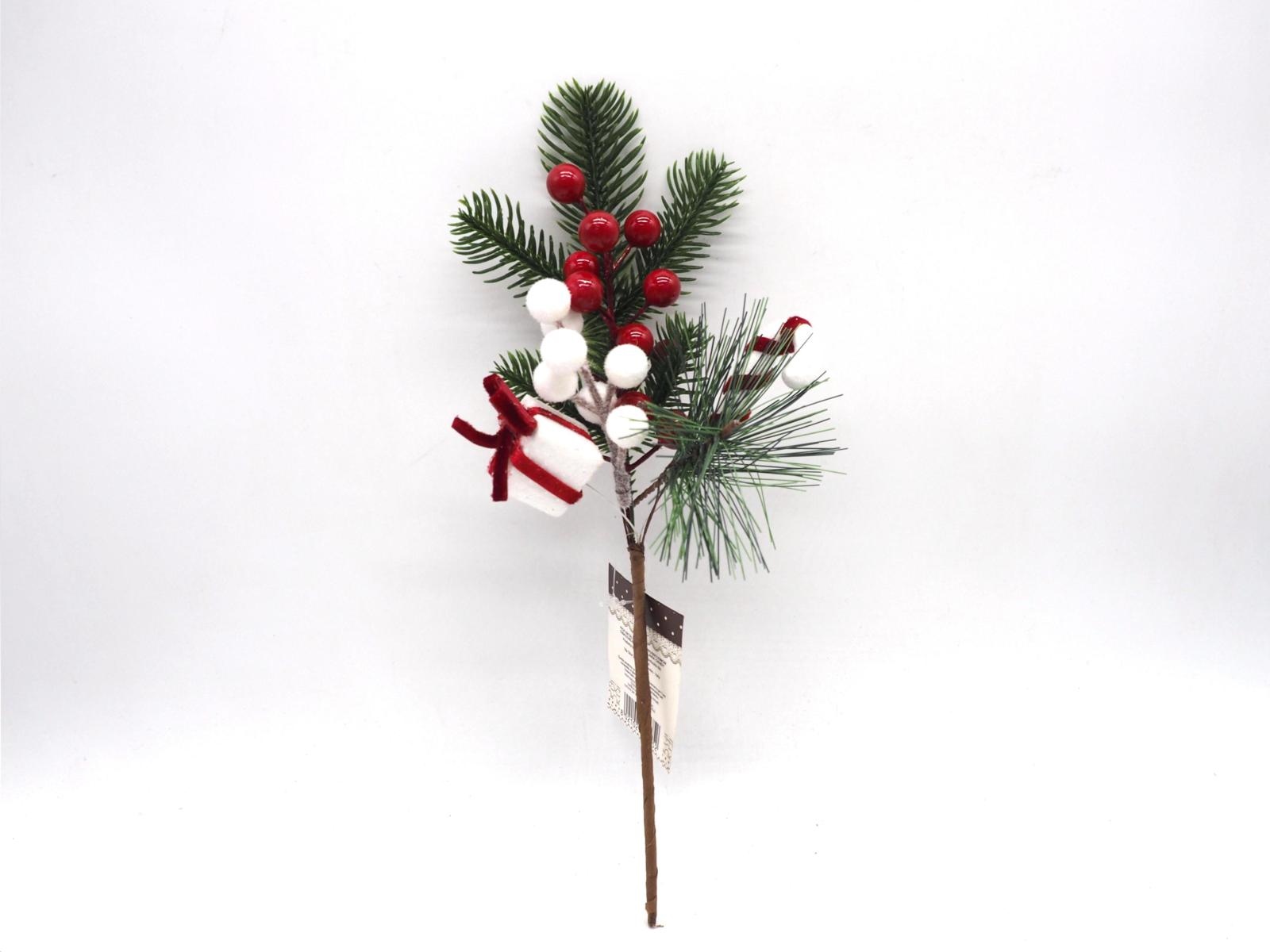 Pick Natalizio Bianco/Rosso H36Cm C/Bacche-Stick-Aghi - Linea Candy