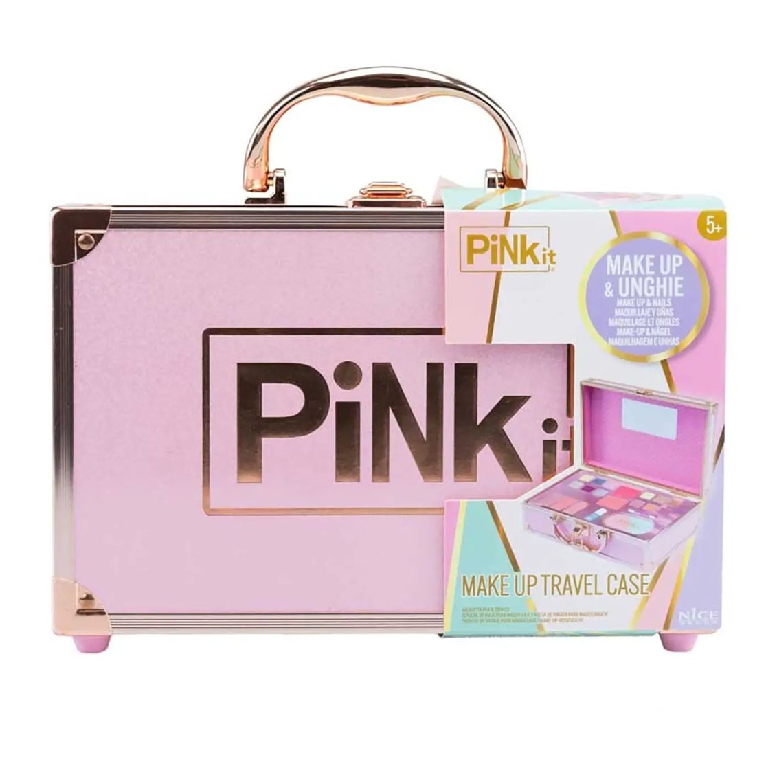 .Valigetta trucchi glamour per bambine! PINKIT Make Up Travel Case è un'elegante valigetta porta trucchi decorata con rifiniture dorate, perfetta per far sentire ogni bambina una piccola principessa. Set completo di trucchi sicuri, testati, atossici, senza parabeni e facilmente removibili con acqua e detergente delicato.