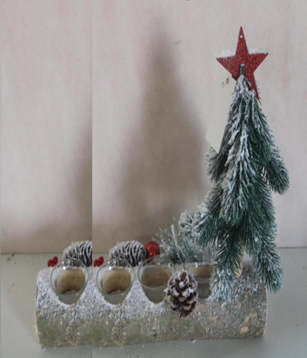 Porta Candela Legni Nevati Rett. C/Pigne/Bacche/Albero H40X9X14Cm.C/4Vet