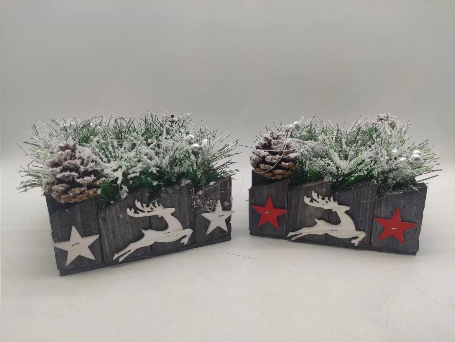 Porta Candela Legno Nevati C/Pigne/Renna H12X15X15Cm.C/1Vetri - 2Ass.Ti