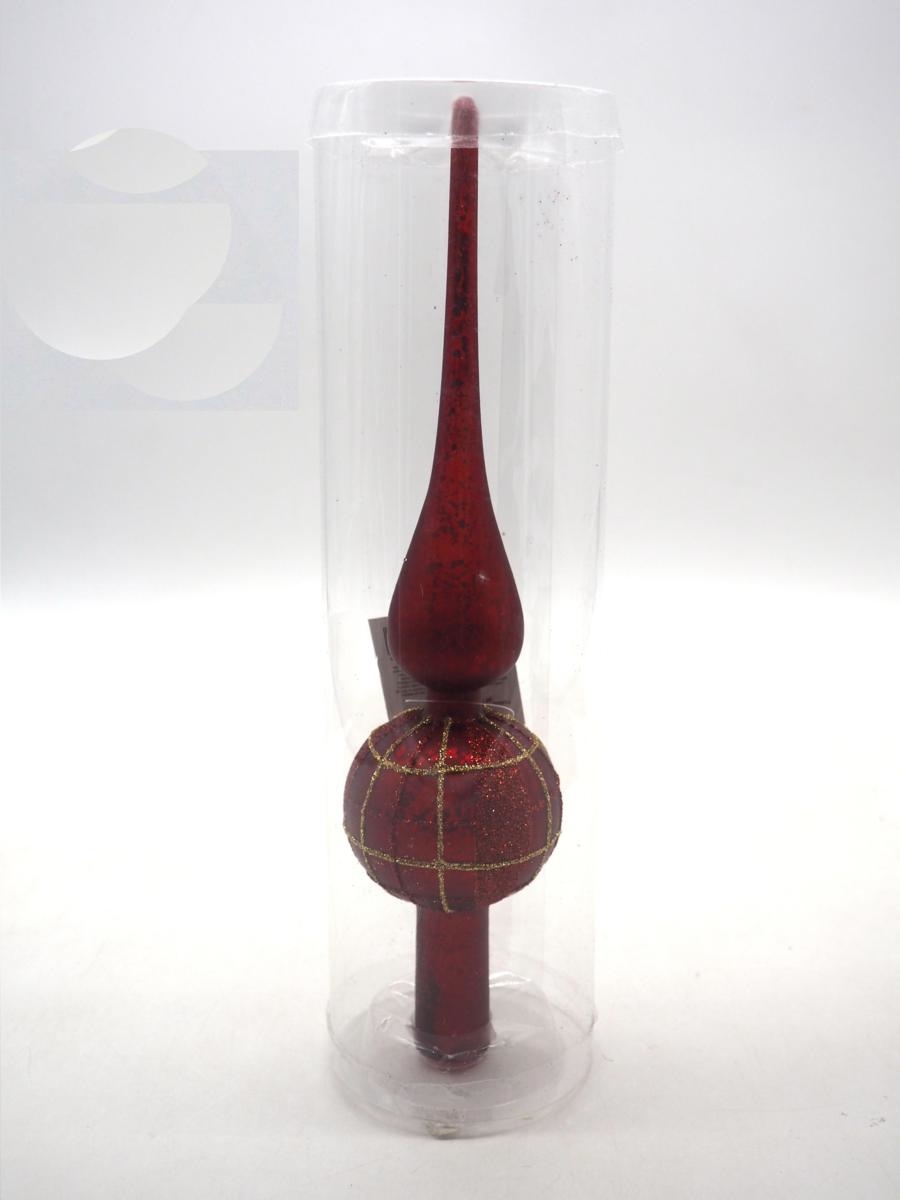 Puntale In Vetro H.31Xd.8Cm Rosso C/Decori Oro/Rossi.