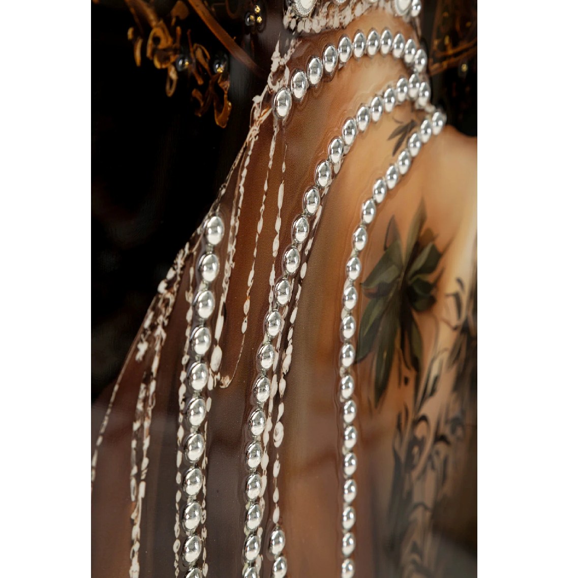 Spolverare la superficie della tela con un panno morbido e asciutto. Evitare prodotti detergenti, acqua o panni umidi a contatto diretto con la tela e con la cornice dorata.