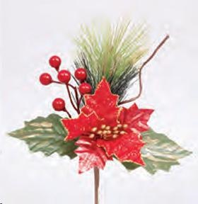 Rametto Pvc Cm.23H Stella Di Natale Rossa C/Foglie E Bacche