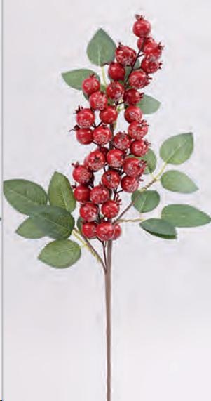 Rametto Pvc Cm.65H Dec.Bacche Rosse Zuccherate Foglie Verdi