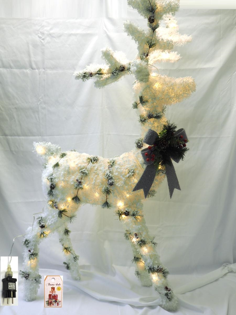 Renna In Tinsel H.120X20X60 Cm. C/80 Luci Led C/Coccarda - C/Spina