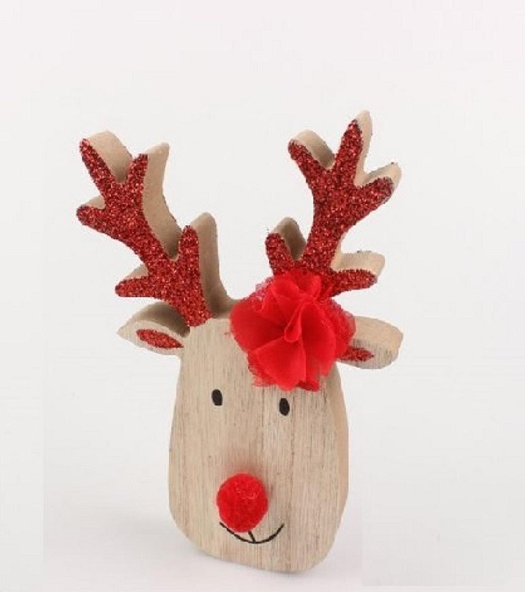 Renna Legno C/Fiore Rosso H.17X2X12 Cm.