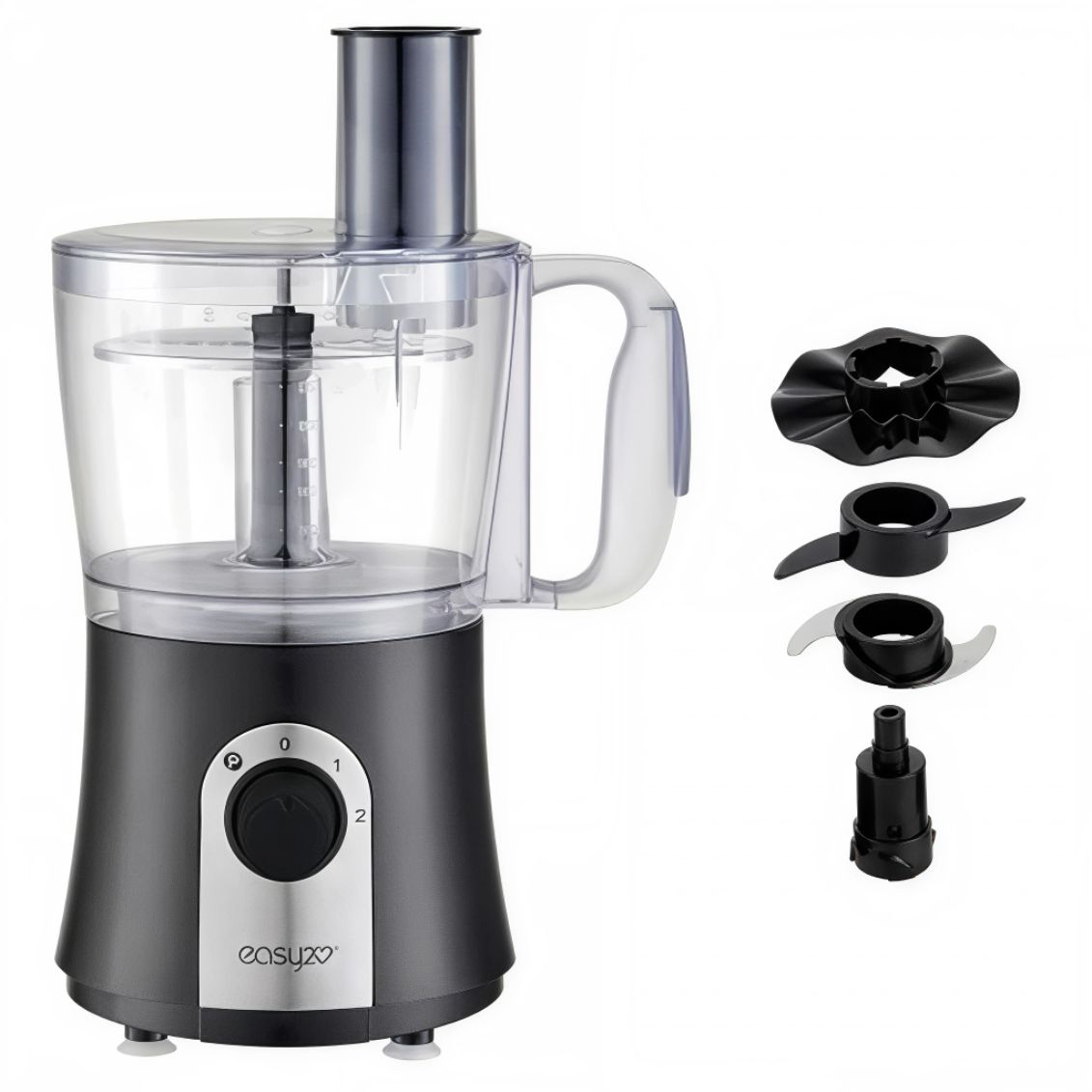 .Robot da cucina multifunzione da 600W con contenitore in acciaio inox da 1,25 litri, dotato di accessori completi per tagliare, sminuzzare, mescolare, affettare, tritare, grattugiare, montare, impastare ed emulsionare. Dotato di 2 velocità e funzione Pulse per controllo preciso, blocco di sicurezza, piedini antiscivolo e foro dosatore. Utilizzo comodo ad una mano, parti rimovibili lavabili in lavastoviglie e design nero elegante.