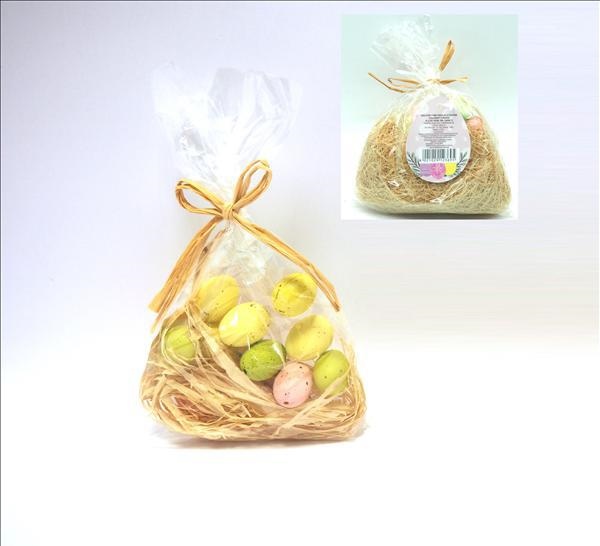 Sacchettino Paglia Con 12 Uova Colorati Con Buco H2,3X1.8Cm.