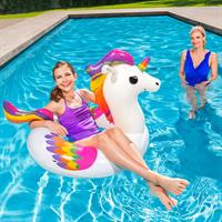 Questo salvagente a forma di unicorno è l'accessorio perfetto per aggiungere un tocco di magia e allegria alle tue giornate in piscina o al mare. Con le sue dimensioni generose e il design colorato, offre divertimento e relax per bambini e adulti.