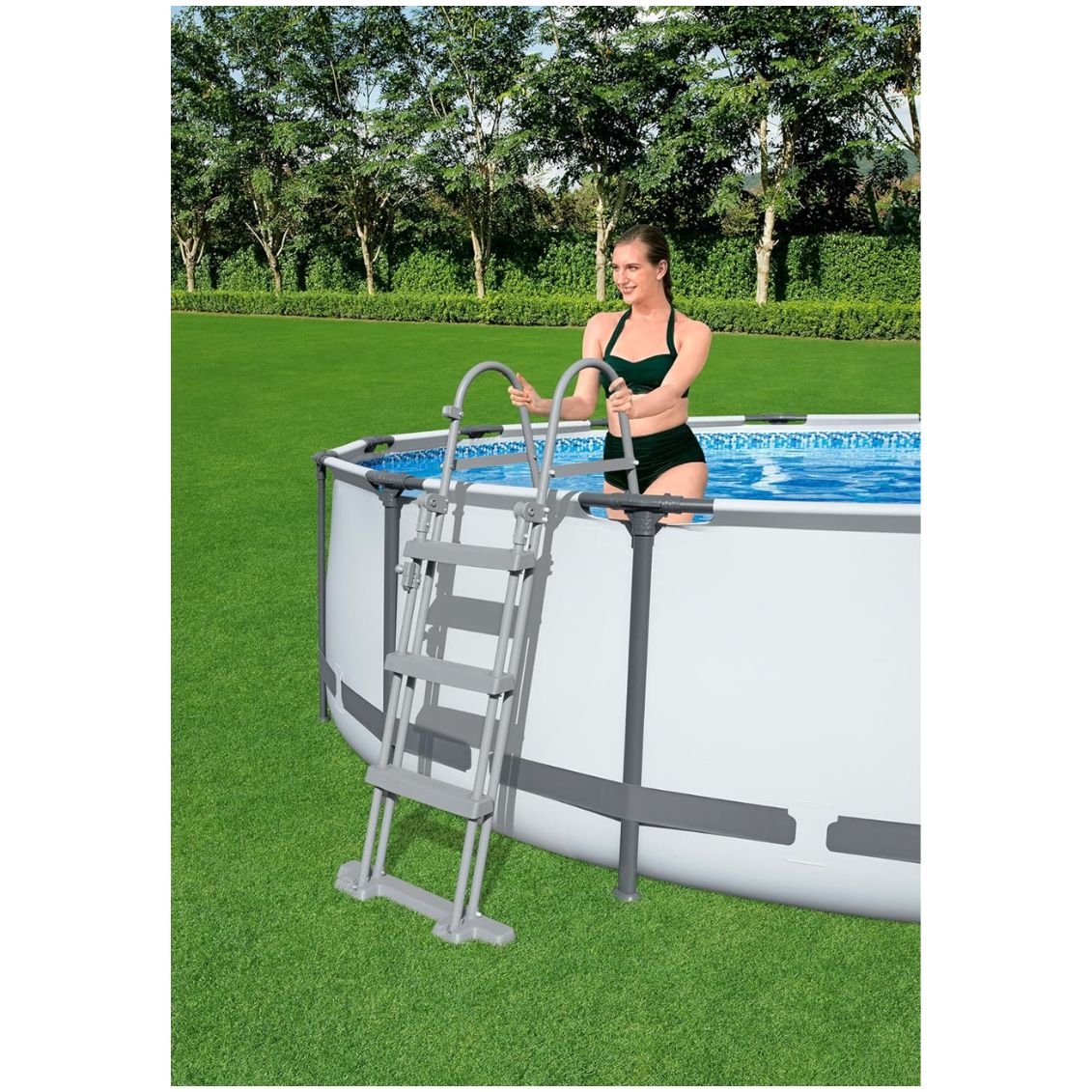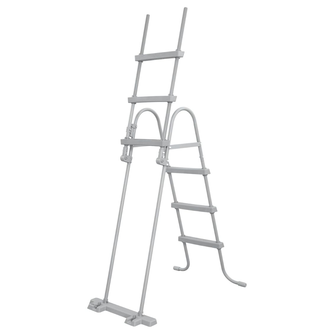 Bestway Scaletta di Sicurezza per piscine fuori terra alte fino a 107 cm. Struttura in metallo anticorrosione e gradini antiscivolo rimovibili per la protezione dei bambini. Codice EAN: 6941607353813.