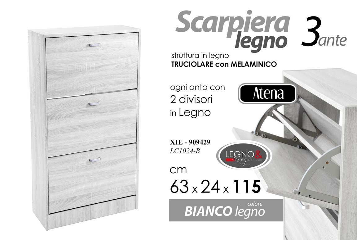 Scarpiera 3 Ante Bianca 63*24*115 cm