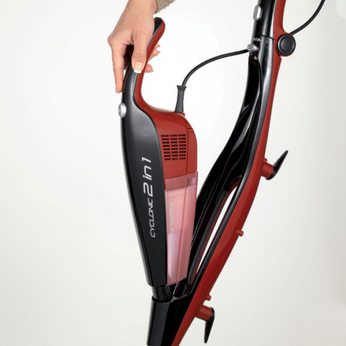 .Ariete Evolution 2764 è la scopa elettrica con filo versatile che si trasforma in un potente aspirabriciole portatile. Con una potenza di 600W e tecnologia ciclonica senza sacco, garantisce un'aspirazione efficace su pavimenti duri e tappeti. Dotata di filtro HEPA E10 lavabile per trattenere le polveri sottili, è leggera, maneggevole e sta in piedi da sola, rendendo le pulizie quotidiane veloci e senza fatica.
