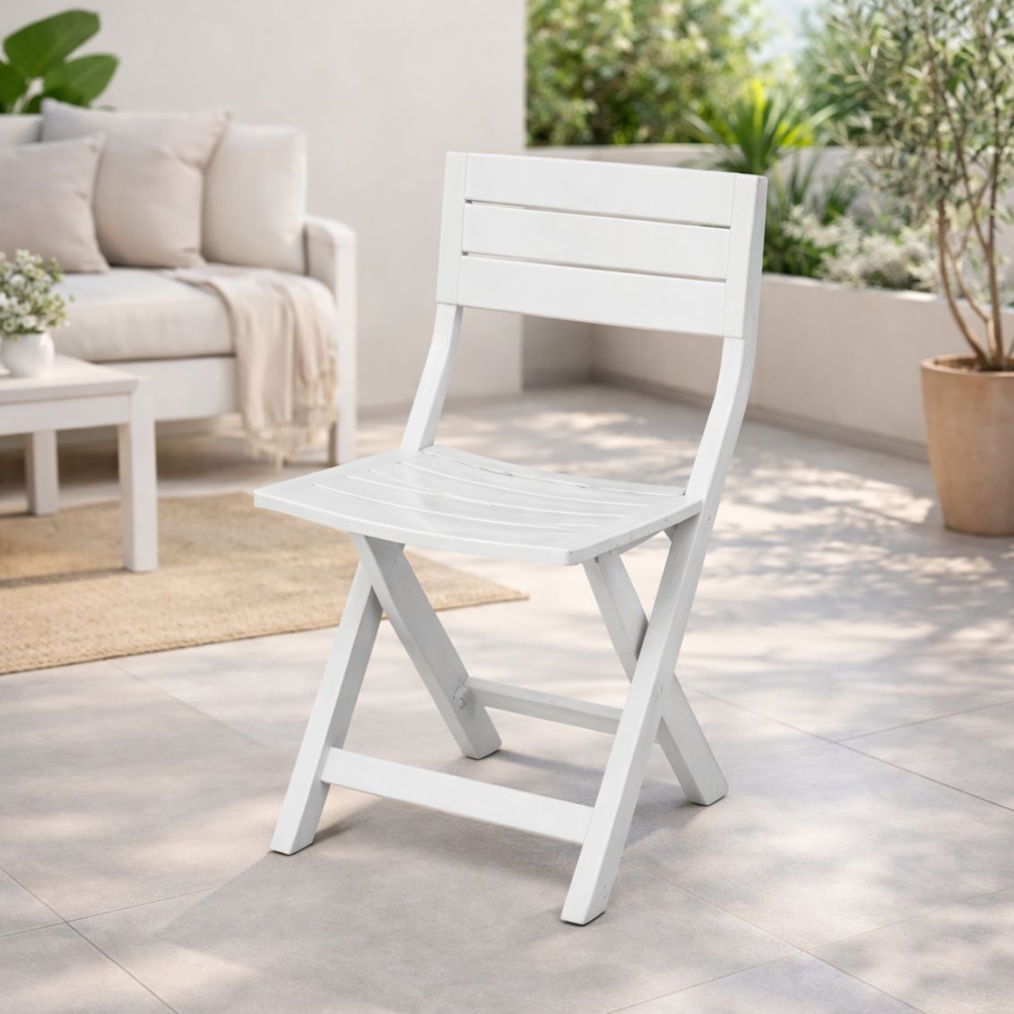 .Aggiungi praticità e comfort ai tuoi ambienti con la Sedia Pieghevole Gilda (marchio Dimaplast 2000). Realizzata in robusta resina antiurto di colore bianco, questa sedia si rivela un prezioso alleato sia per gli spazi interni che per le aree esterne come giardini, balconi o terrazze. Le sue dimensioni compatte (43x44 cm per 80 cm di altezza) e la comoda profondità della seduta di 39 cm offrono un ottimo compromesso tra funzionalità ed ingombro ridotto.