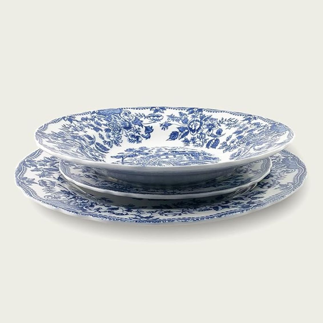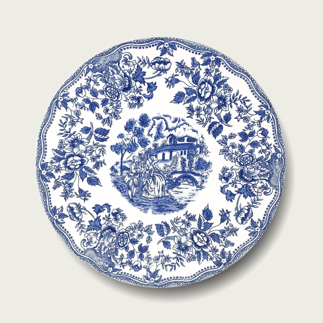 Tradizione Inglese Senza Tempo: Il decoro Old London rappresenta uno dei pattern più iconici e apprezzati della tradizione ceramica inglese. Caratterizzato da scene paesaggistiche bucoliche in blu cobalto su fondo bianco candido, questo stile risale al XVIII secolo quando la porcellana decorata con motivi orientaleggianti divenne simbolo di raffinatezza. Il decoro presenta tipicamente una scena centrale con paesaggi romantici, ponti, architetture, figure umane immerse nella natura, circondata da ricche bordure floreali con fiori, foglie, rami intrecciati che creano una cornice elaborata e armoniosa. Il blu cobalto utilizzato è un colore profondo, intenso e duraturo che non si sbiadisce con lavaggi o uso. Questo tipo di decorazione è chiamato "transferware" perché applicato tramite trasferimento di stampe ceramiche cotte ad alte temperature direttamente nella porcellana, garantendo resistenza eccezionale. Lo stile Old London evoca atmosfere vittoriane, giardini inglesi, afternoon tea, eleganza classica che non passa mai di moda. Si abbina perfettamente sia a tavole formali che casual, a stili d'arredo classici, shabby chic, country, cottage inglese, ma sorprendentemente anche a contesti moderni dove crea un contrasto affascinante. Le decorazioni floreali ricche e dettagliate rendono ogni piatto un piccolo capolavoro artistico che impreziosisce la tavola.