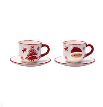 Set 2Tazze H.11,5X9,5X19Cm. Disegno Natale 3 Assortimenti