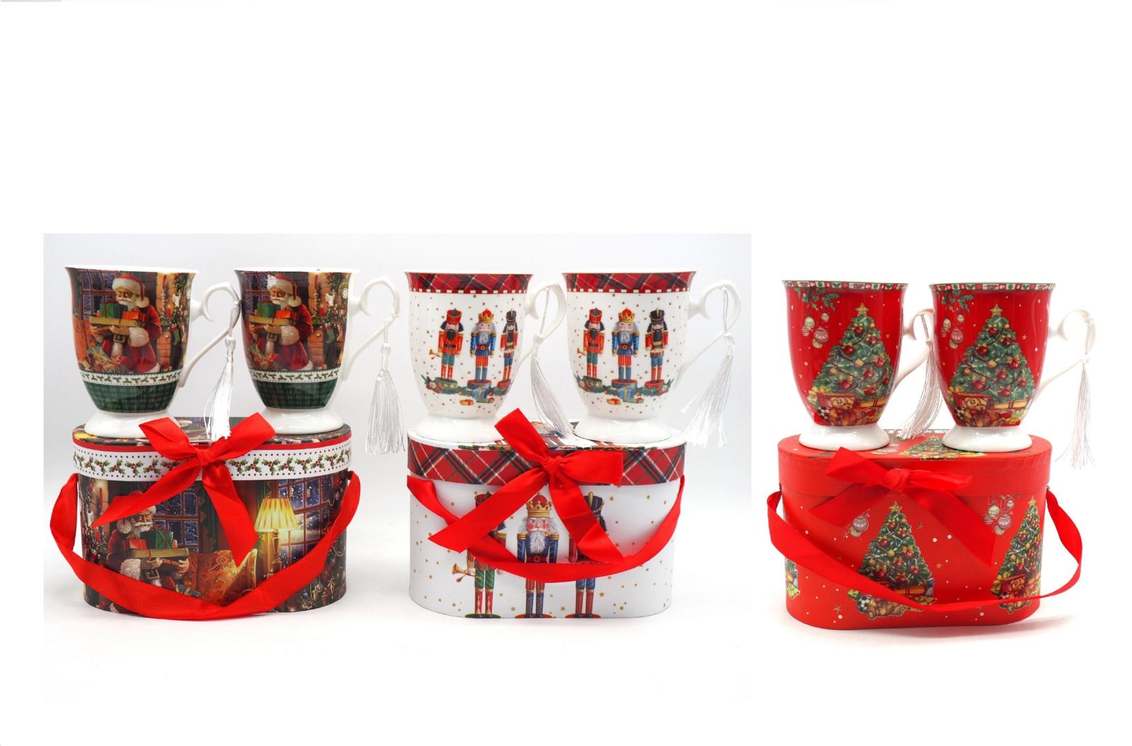 Set 2Tazze H.11,5X9,5X19Cm. Disegno Natale 3 Assortimenti