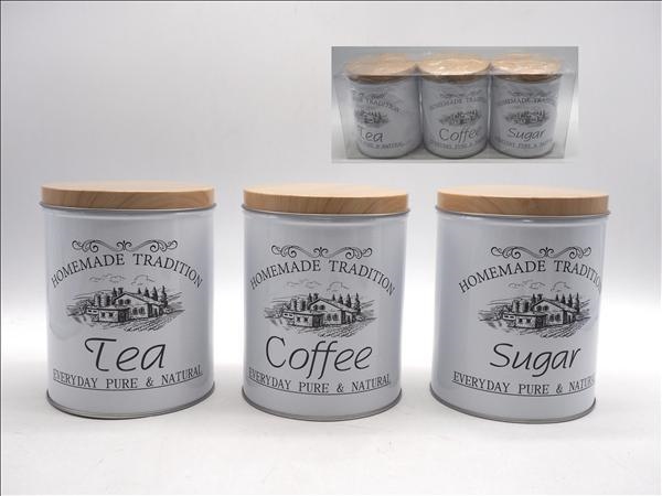 Set 3 Barattoli Latta H.15/D.10Cm. Tea/Sugar/Coffe Bianco