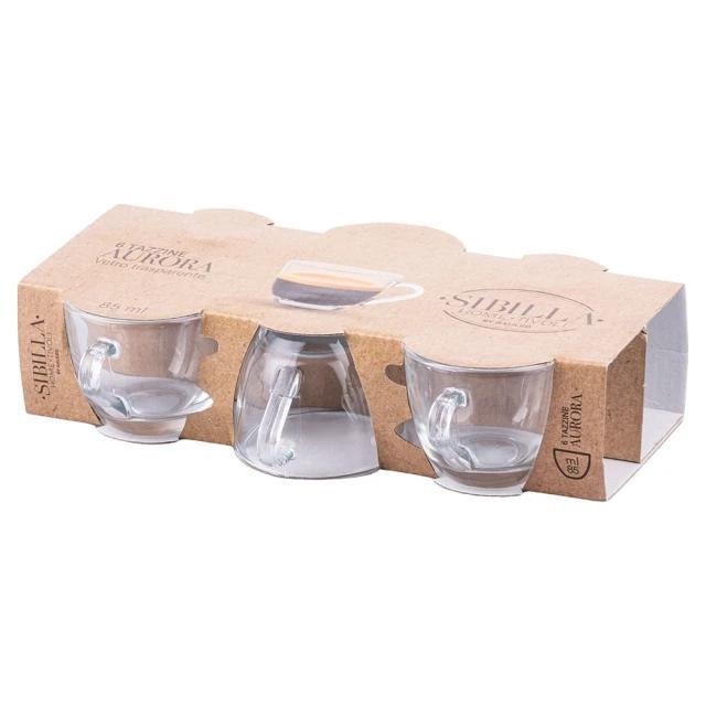 Set 6 tazzine da caffè 85 ml in vetro trasparente Sibilla