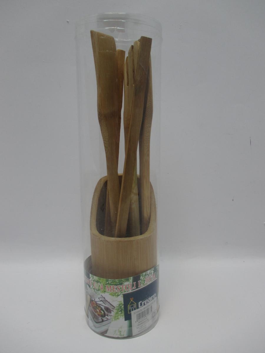 Set Porta Mestoli Con 4 Mestoli Legno L. 30Cm