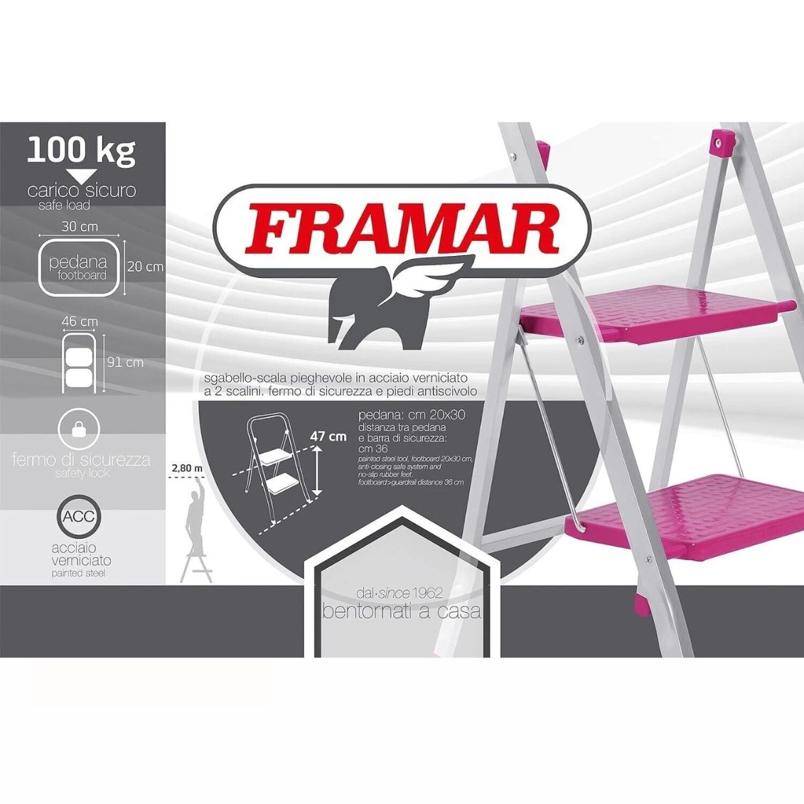 Lo sgabello Slimmy modello FR137 è progettato pensando alla sicurezza domestica. Nonostante le dimensioni ridotte, la struttura in acciaio assicura rigidità durante l'uso. I piedini sono dotati di gommini che proteggono il pavimento dai graffi e prevengono scivolamenti accidentali. Il meccanismo di chiusura è semplice e intuitivo, rendendolo pronto all'uso in pochi secondi.