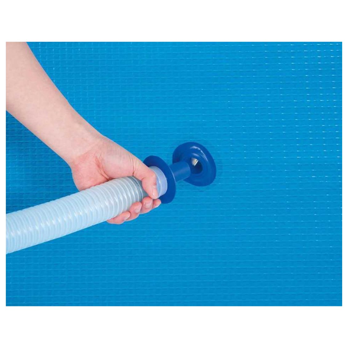 Il fissaggio avviene agganciando la staffa al bordo superiore della piscina; è sufficiente poi collegare il tubo flessibile (incluso) alla bocchetta di aspirazione interna. Regola l'altezza dello skimmer in modo che il bordo galleggiante si allinei al livello dell'acqua.