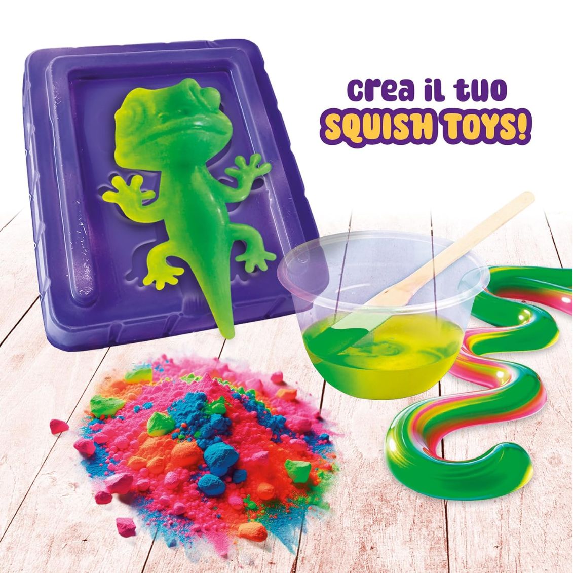 Crea il tuo straordinario Camaleonte squishy che cambia colore con la temperatura! Slumi Science Squish Camaleonte è un kit scientifico innovativo che permette ai bambini di realizzare un squishy toy speciale a forma di camaleonte con pigmento termocromico. Proprio come il vero rettile che cambia colore per mimetizzarsi, questo squishy reagisce al calore delle mani modificando la sua tonalità. Un'esperienza che unisce chimica, biologia animale e puro divertimento sensoriale.